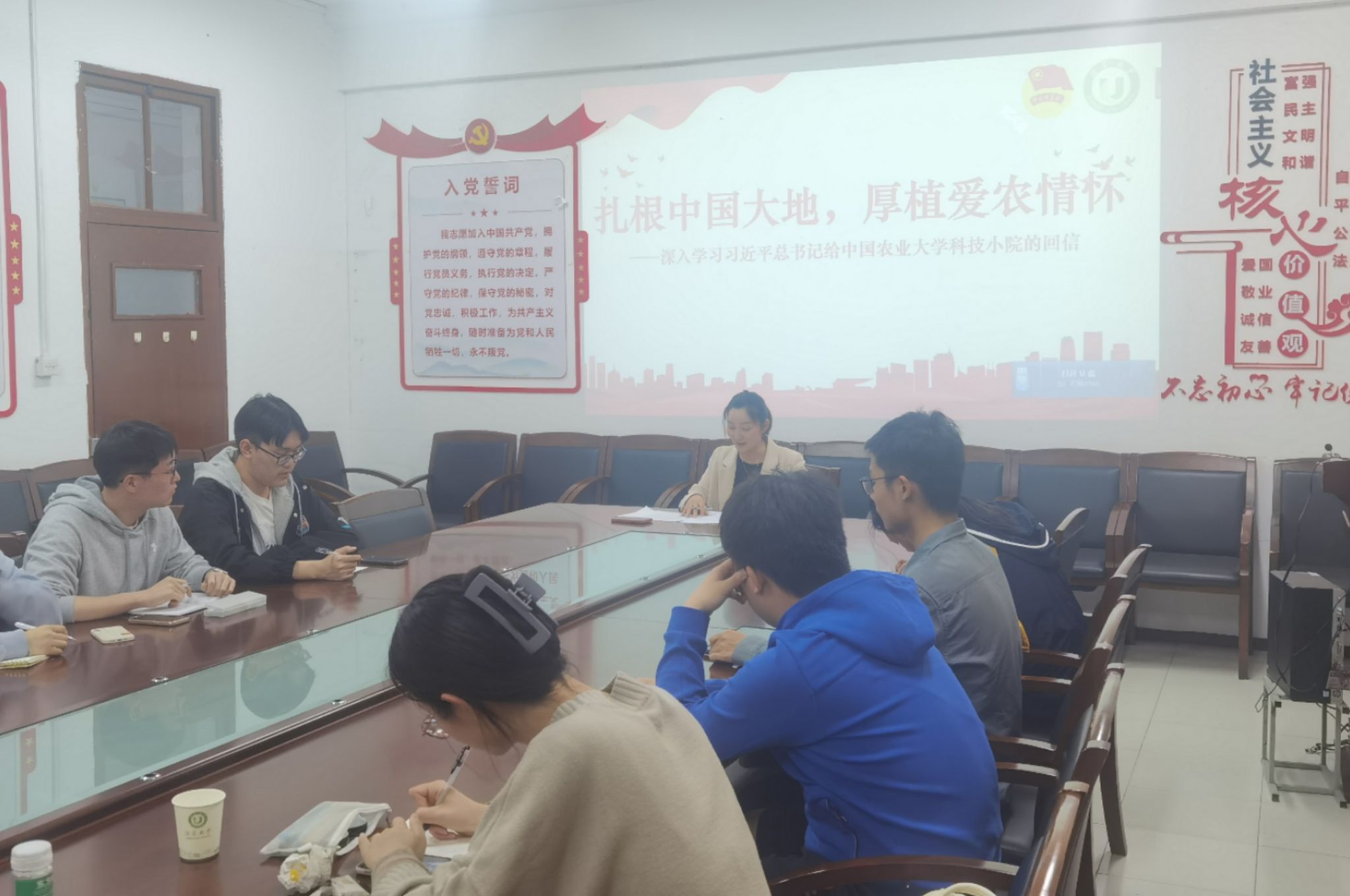 在数科院206会议室组织团学干部学习习近平总书记给中国农业大学科技小院学生的回信精神。学习会由色情网站