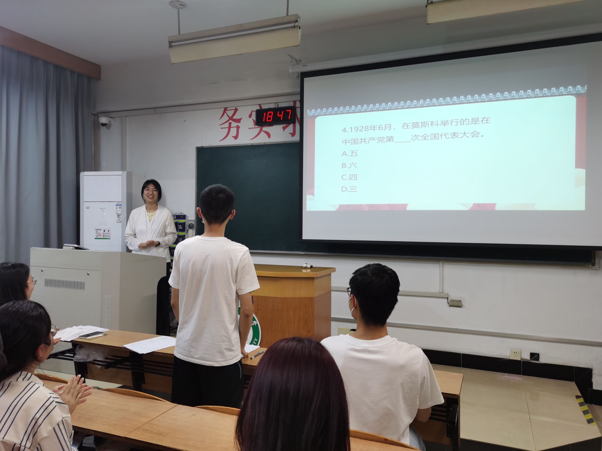 首先,窦宇指出学习四史的重要性:历史是最好的教科书,学好党史、新中国史、改革开放史、社会主义发展史是牢记党的初心和使命的重要途径,也是爱国主义的重要组成部分。随后,以试卷和抢答两种方式开展四史知识竞赛。参赛选手认真作答,在抢答环节积极踊跃,展现对学习四史知识的高涨热情和扎实的理论基础。
