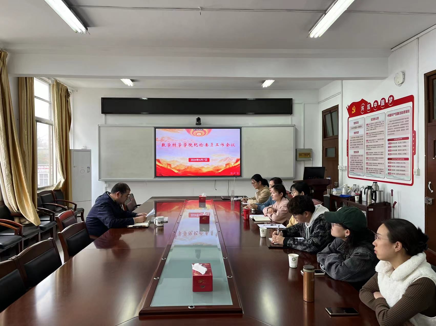 纪检委员工作会议。会议由院党委副书记、副院长万选主持,院党务办主任贡崇颖及各党支部纪检委员参加。