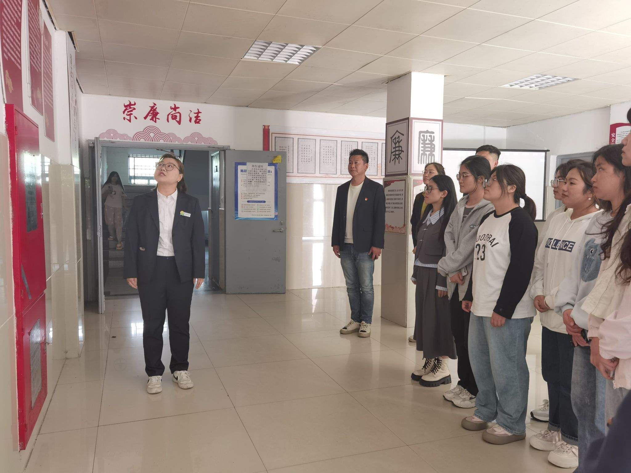 在“廉洁进社区”环节,赵亚男带领大家参观廉洁角,讲述周恩来、张桂梅等中国六位廉洁代表的故事,带领大家观看视频,了解王渔洋及其家族防微杜渐、严于律己的清廉节操。