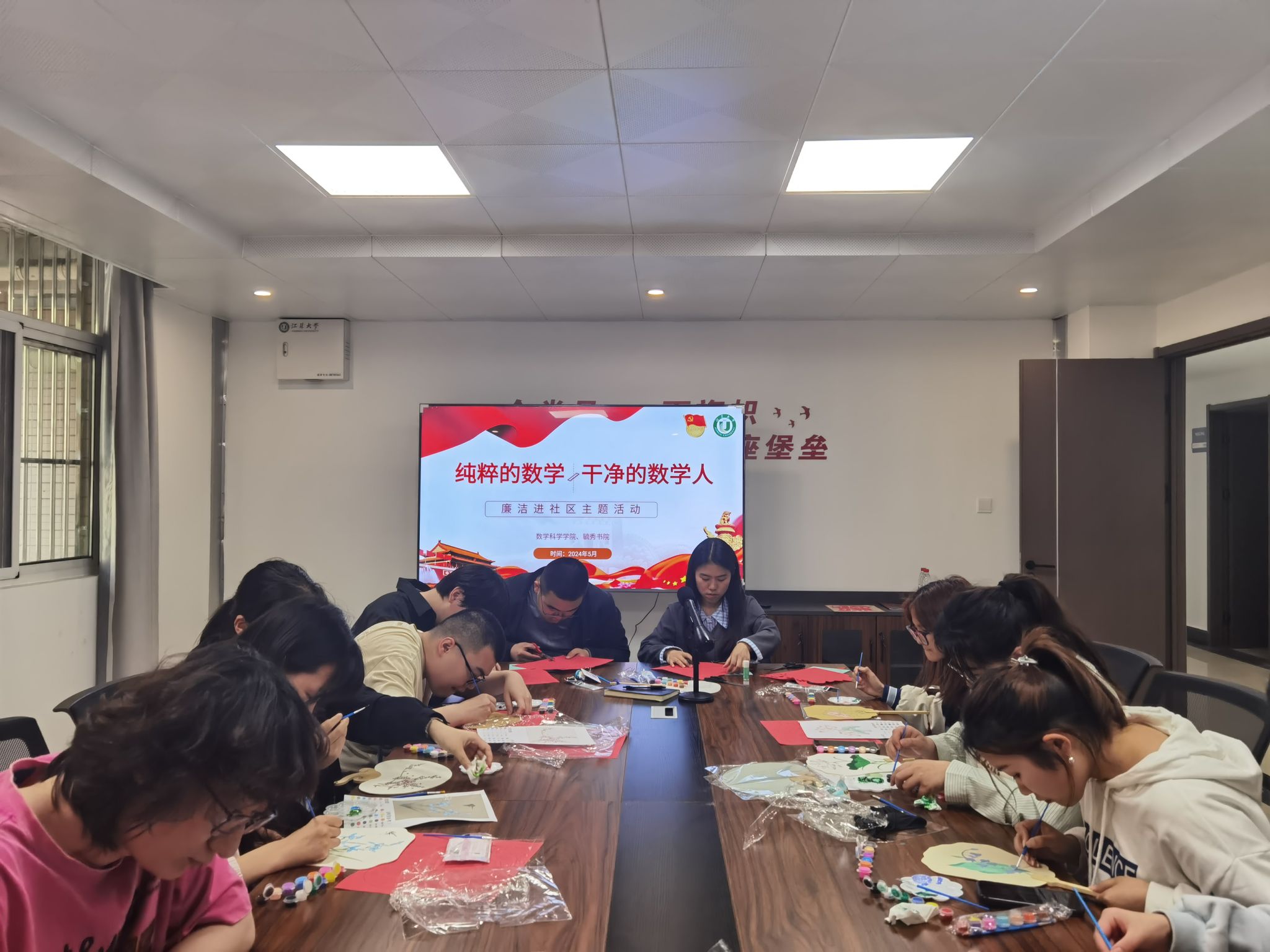 本次活动以“廉洁”为主题,从“廉洁纪律”“廉洁文化”“廉洁故事”“清廉有我”以及“廉洁进社区”五个方面展开。葛万里带领大家学习了《中国共产党纪律处分条例》第八章和第九章的内容,告诫大家严于律己,打牢思想根基,做到时刻自洁自醒。牛贺欣阐述了廉洁文化的定义,并从四个方面讲述了廉洁文化的意义,通过两个古代廉洁官员事迹的视频为大家分享廉洁故事。在“清廉有我”环节,大家通过制作廉洁团扇以及廉洁剪纸,感受廉洁美德的内涵,体会廉洁的价值和意义。