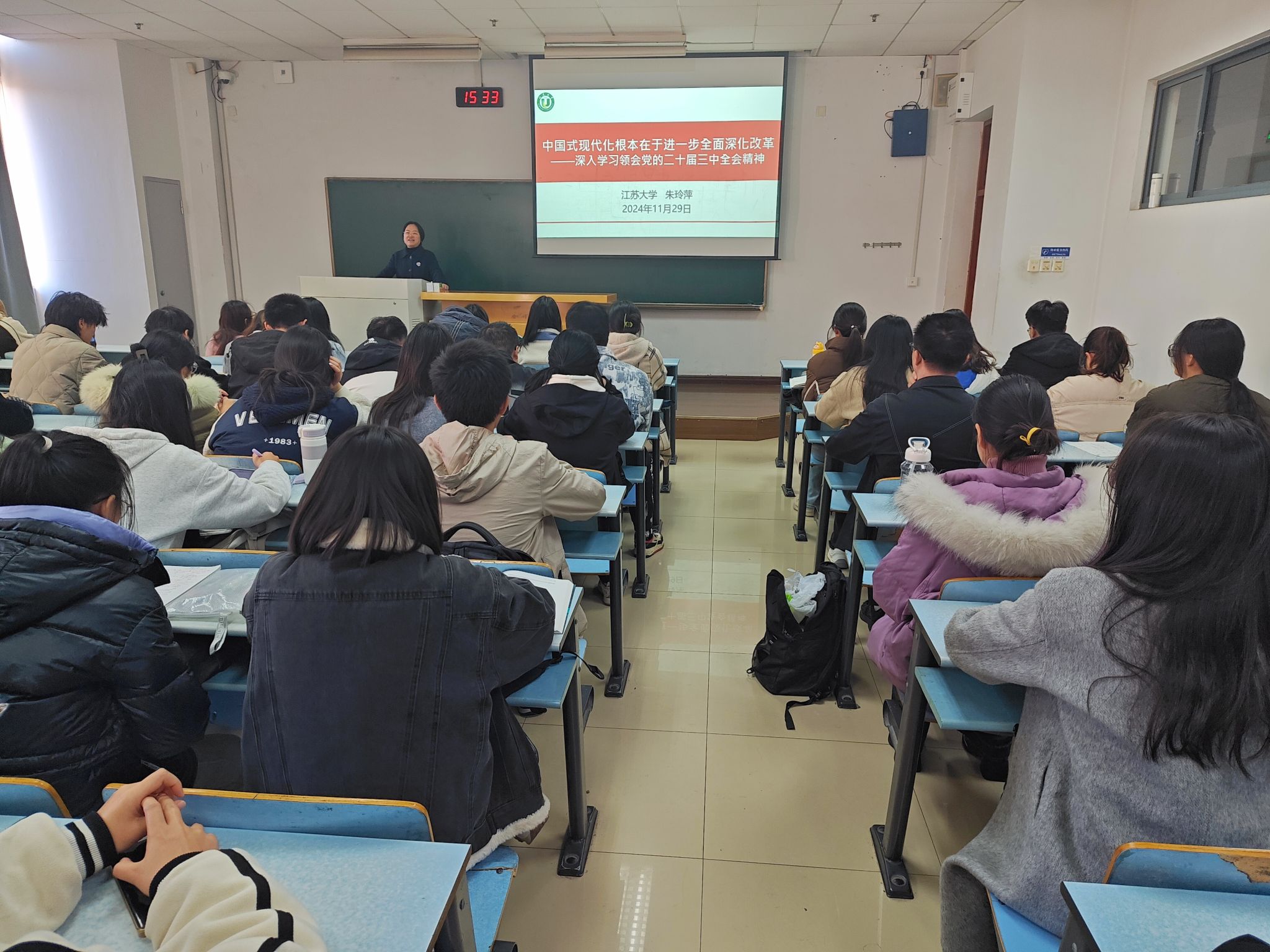 在三江楼411教室举办党的创新理论专题党课——“学习贯彻党的二十届三中全会精神”。本次党课特邀法色情网站