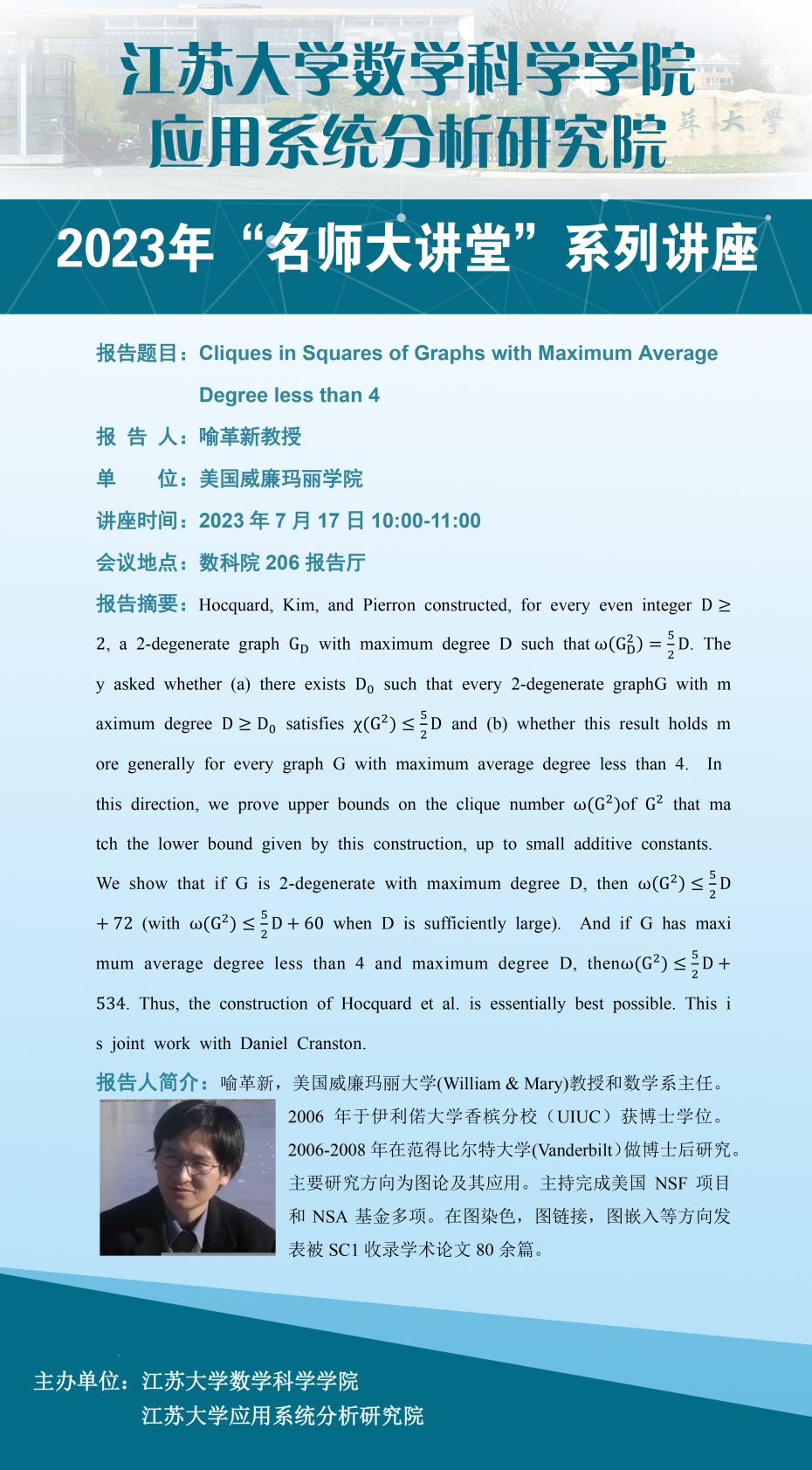 Academic Lecture of Professor Gexin Yu