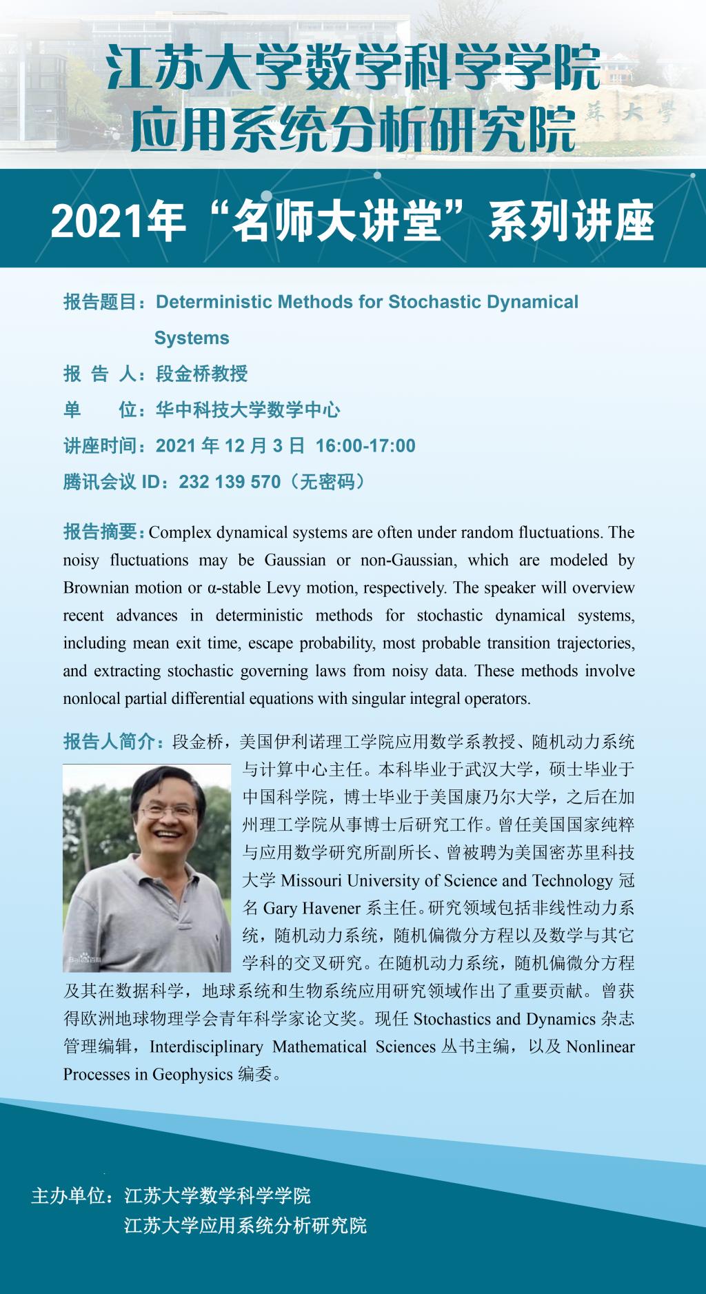 Academic Lecture of Professor Jinqiao Duan
