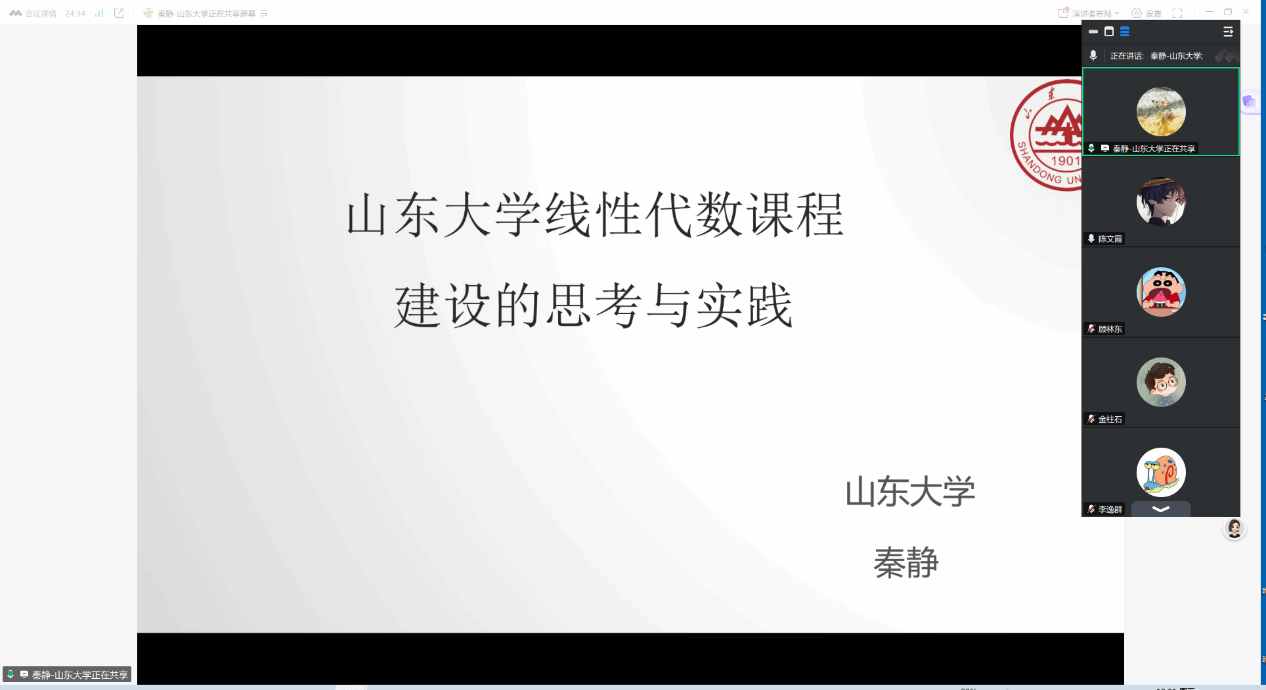2025 年 5 月 30 日,一场聚焦数学教育创新的 “名师讲堂 - 数学专题系列报告” 通过腾讯会议云端开讲。国家级教学名师、山东大学秦静教授以 “山东大学线性代数课程建设的思考与实践” 为题,为色情网站